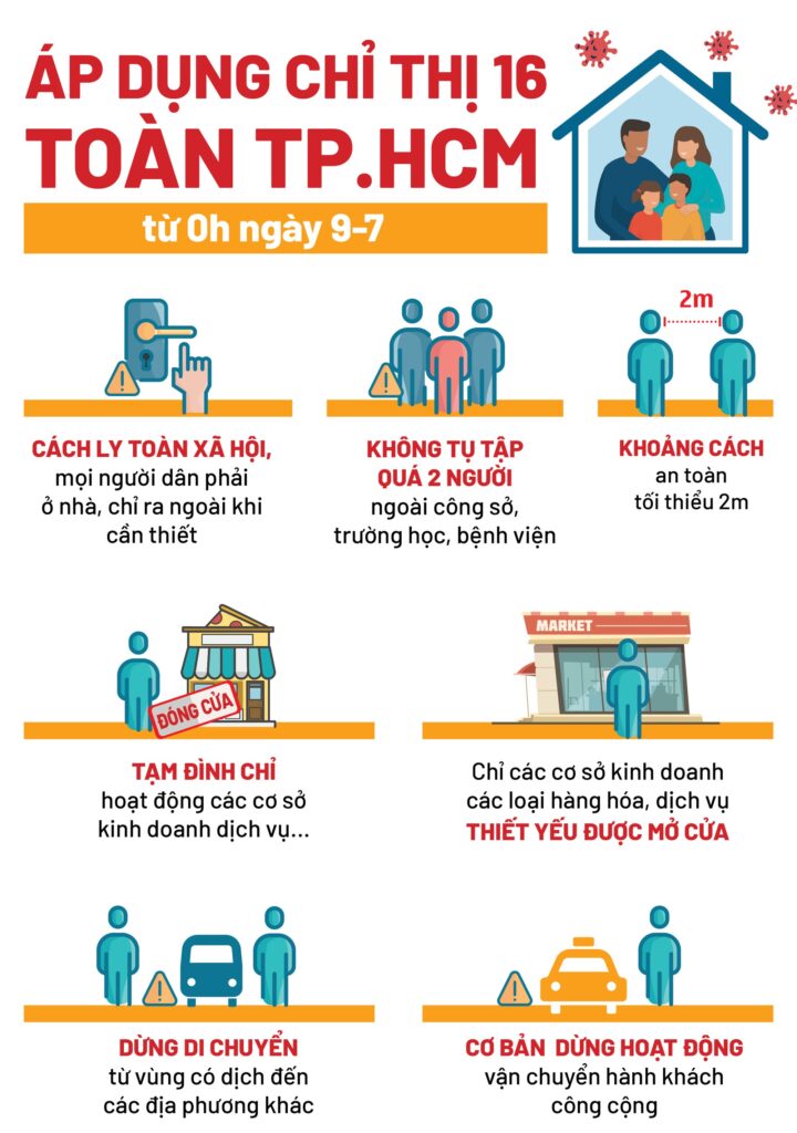 Ngày 7/7, UBND TP.HCM quyết định sẽ áp dụng giãn cách xã hội toàn thành phố theo Chỉ thị 16 của Thủ tướng từ 0 giờ ngày 9/7, thời gian áp dụng 15 ngày. Vậy nội dung Chỉ thị 16 đề cập nội dung gì?